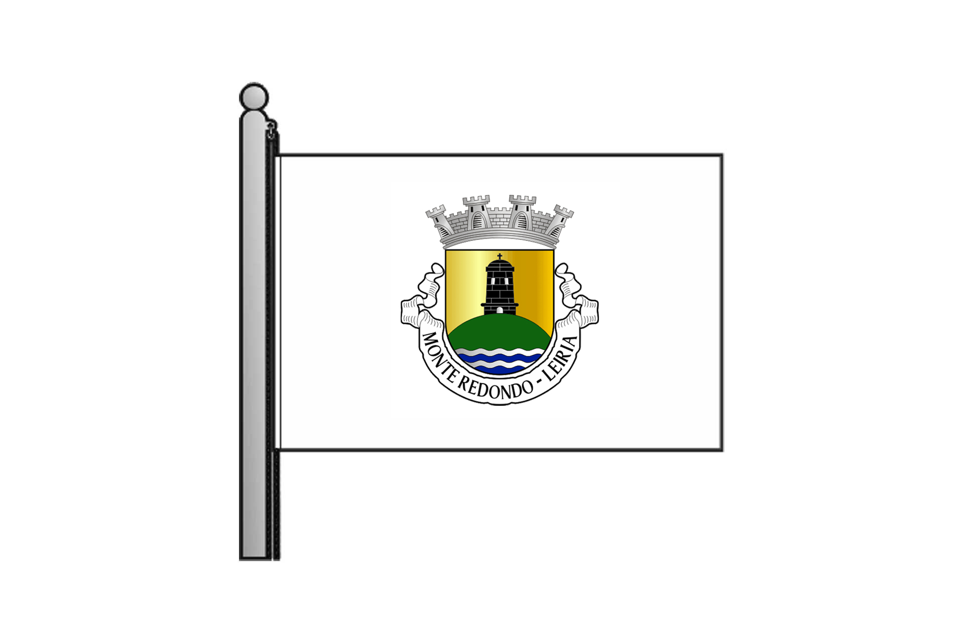 Listel branco, com a legenda a negro em maiúsculas: “ MONTE REDONDO - LEIRIA “.